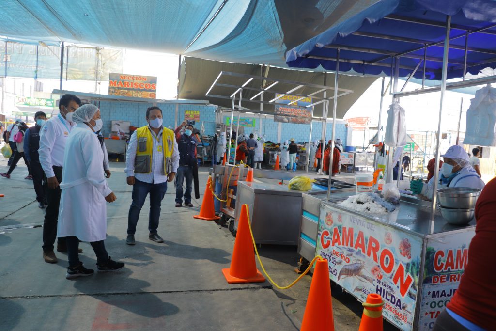 Se realizó la inspección de verificación de protocolos sanitarios en el Terminal Pesquero de la Plataforma Comercial de Río Seco, donde participaron el Gerente de la Producción del Gobierno Regional de Arequipa, Ing. Julio Cutipa Mamani y el Sub Gerente de MIPYMES, Ing. José Valencia, además de fiscalizadores de la comuna distrital de Cerro Colorado.