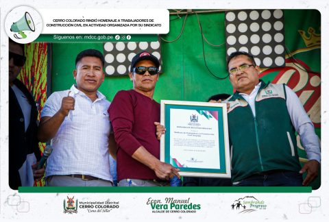Durante esta actividad, la comuna cerreña hizo entrega de un reconocimiento institucional y copas para la premiación de su campeonato deportivo, como muestra de respaldo a las iniciativas de confraternidad y celebración de los derechos laborales de los trabajadores del sector construcción civil.