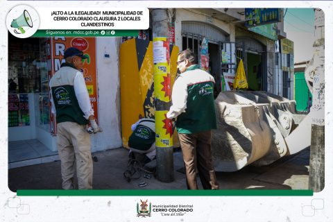 Este 9 de junio, la Municipalidad Distrital de Cerro Colorado, a través de la Subgerencia de Licencias, Autorizaciones e ITSE, ejecutó el bloqueo con bloques de concreto de dos locales clandestinos que habían sido intervenidos y clausurados días atrás por funcionar al margen de la ley.