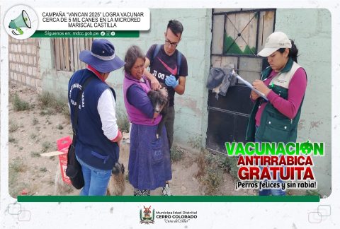 Con รฉxito se desarrollรณ la gran campaรฑa de โ€œVacunaciรณn Antirrรกbica Gratuita 2025 โ€“ VANCANโ€ en el รกmbito de la microred de Mariscal Castilla, gracias al trabajo articulado entre el Ministerio de Salud y la Municipalidad Distrital de Cerro Colorado, liderada por el Econ. Manuel Enrique Vera Paredes.