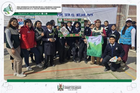 La Municipalidad Distrital de Cerro Colorado, liderada por nuestra primera autoridad, el Econ. Manuel Enrique Vera Paredes, a trav茅s del Comit茅 Distrital de Seguridad Ciudadana (CODISEC), llev贸 a cabo con 茅xito la Feria Informativa en Prevenci贸n de la Seguridad Ciudadana en la I.E. Casa de Caridad Artes y Oficios, en cumplimiento del Plan de Acci贸n Distrital de Seguridad Ciudadana 2025.