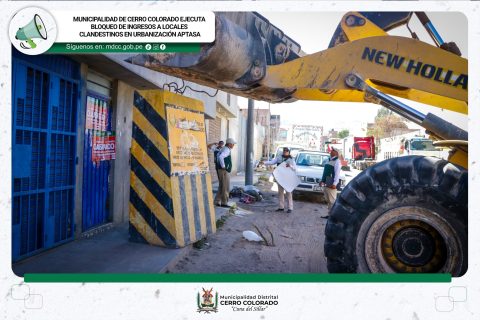 La Municipalidad Distrital de Cerro Colorado, a través de la Subgerencia de Licencias, Autorizaciones e ITSE, realizó hoy lunes 30 de junio la colocación de bloques de concreto y soldadura de las entradas de dos locales clausurados en la Urbanización APTASA, como parte de las acciones complementarias del reciente operativo de fiscalización ejecutado junto al Serenazgo Municipal y la DIVINCRI.