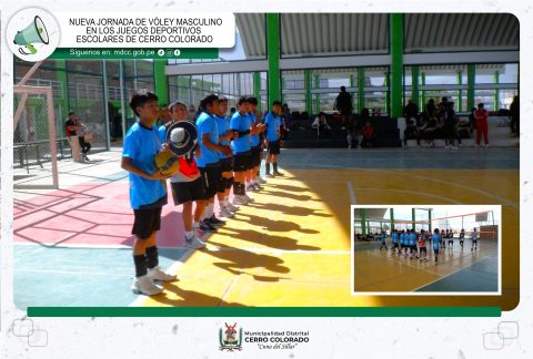 El día de hoy se vivió una nueva fecha de competencia en la categoría vóley varones, desarrollada en las instalaciones del Vivero Municipal, como parte de los Juegos Deportivos Escolares 2025, que impulsa la Municipalidad Distrital de Cerro Colorado.