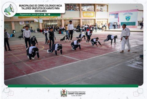 📢Con el objetivo de fomentar el deporte, el autocontrol emocional y el rendimiento académico en los adolescentes, la Municipalidad Distrital de Cerro Colorado, a través de la Gerencia de Desarrollo Social, dio inicio al taller gratuito de karate dirigido a los estudiantes de la Institución Educativa Domingo Zamácola y Jáuregui.
