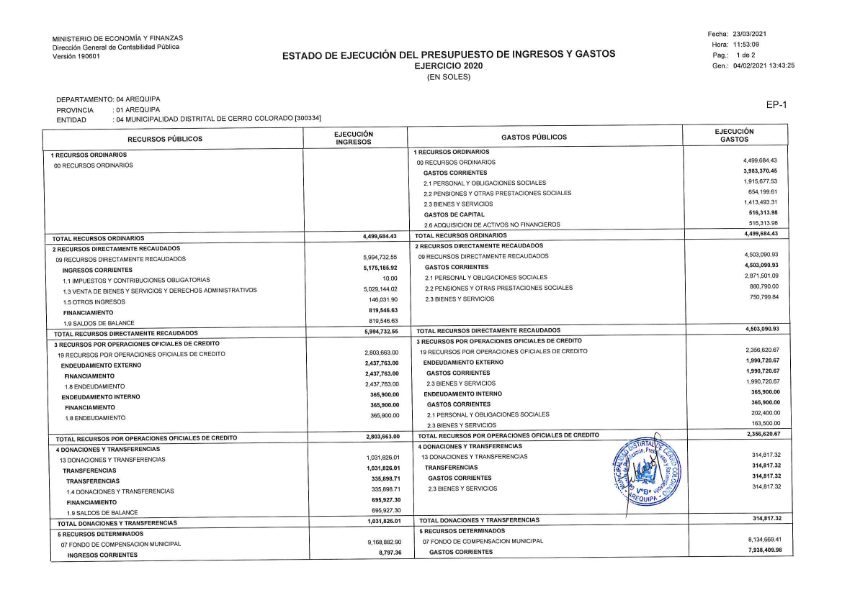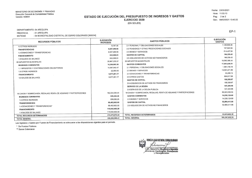 ESTADO DE EJECUCIÓN DEL PRESUPUESTO DE INGRESOS Y GASTOS EJERCICIO 2020