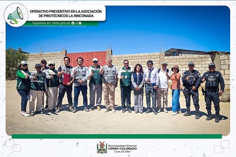 La Municipalidad Distrital de Cerro Colorado, a través de la Subgerencia de Licencias, Autorizaciones e ITSE y el equipo de Seguridad Ciudadana – Serenazgo, participó en un importante operativo inopinado preventivo, realizado en coordinación con el Ministerio Público, la SUCAMEC y la Unidad de Desactivación de Explosivos (UDEX) de la Policía Nacional del Perú, en la Asociación de Pirotécnicos La Rinconada.