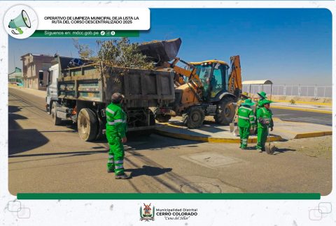 La Municipalidad Distrital de Cerro Colorado, a través de la Subgerencia de Gestión de Residuos Sólidos y el Departamento de Barrido, ejecutó un operativo integral de limpieza en la avenida Bicentenario, así como en las bermas y veredas que serán parte del recorrido del Corso Descentralizado por el 485° aniversario de Arequipa.