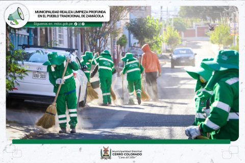 El martes 22 de julio, la Municipalidad Distrital de Cerro Colorado, a través de las subgerencias de Gestión Integral de Residuos Sólidos, Mantenimiento de Áreas Verdes y Mantenimiento de Infraestructura y Vías, realizó un importante operativo de limpieza en el Pueblo Tradicional de Zamácola.