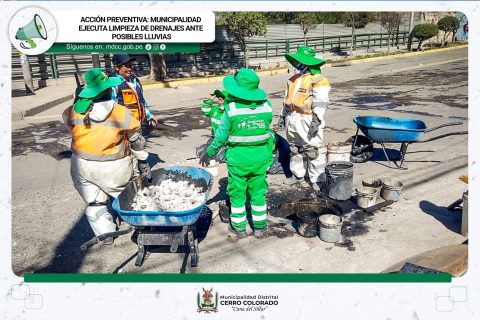 La Municipalidad Distrital de Cerro Colorado continúa fortaleciendo sus acciones de prevención ante posibles emergencias climáticas. A través de la Subgerencia de Gestión del Riesgo de Desastres, se desarrolló un importante operativo de limpieza de drenajes y canaletas en la zona de Semi Rural Pachacútec, una de las más vulnerables del distrito durante la temporada de lluvias.