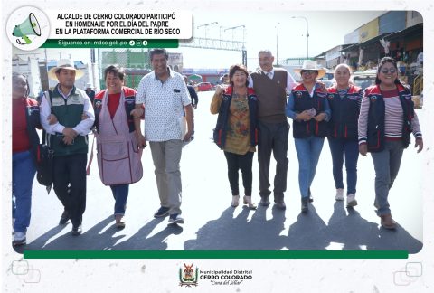 El pasado viernes 13 de junio, el alcalde de la Municipalidad Distrital de Cerro Colorado, Econ. Manuel Enrique Vera Paredes, participó del emotivo homenaje por el Día del Padre organizado por los comerciantes de la plataforma comercial de Río Seco.