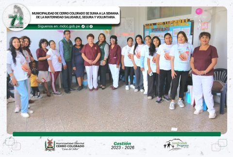 La Municipalidad Distrital de Cerro Colorado se une activamente a la Semana de la Maternidad Saludable, Segura y Voluntaria, una importante iniciativa que se viene desarrollando de manera descentralizada en los distintos establecimientos de salud del distrito.