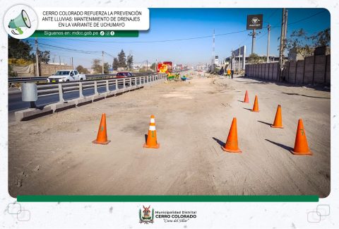✅La Subgerencia de Gestión del Riesgo de Desastres de la Municipalidad Distrital de Cerro Colorado ejecutó labores de mantenimiento, limpieza y remoción de sedimentos en los sistemas de drenaje de la vía auxiliar del kilómetro 5 de la Variante de Uchumayo, con el objetivo principal de mitigar el riesgo de inundaciones en este sector altamente transitado.