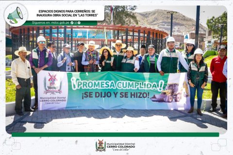 La gestión 2023 – 2026 de la Municipalidad Distrital de Cerro Colorado, realizó la inauguración del importante proyecto: “Creación de los Servicios Públicos de Integración Económica y Social en el Asentamiento Poblacional de la Asociación de Vivienda Las Torres” el día 23 de julio.