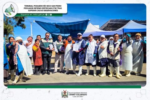 La Municipalidad Distrital de Cerro Colorado, a través de la Subgerencia de Licencias, Autorizaciones e ITSE, hizo entrega oficial del Certificado de Inspección Técnica de Seguridad en Edificaciones (ITSE) al Terminal Pesquero Río Seco San Pedro Pescador, ubicado en Carretera a Yura km 6.5 – Av. Emancipación, Plataforma Comercial Río Seco, luego de verificar que el establecimiento ha cumplido con todos los requerimientos técnicos necesarios para garantizar la seguridad de sus instalaciones.