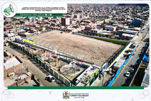 Comprometido con el deporte y el bienestar de la juventud cerreña, el alcalde distrital de Cerro Colorado, Econ. Manuel Enrique Vera Paredes, lidera la construcción del Complejo Deportivo de Villa Cerrillos, una moderna infraestructura que se convertirá en punto de encuentro para la práctica deportiva y la recreación familiar en la zona.