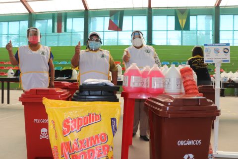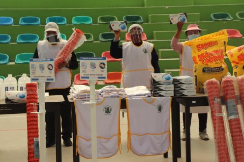 El Comité de Autocontrol Sanitario de cada mercado, recibió 25 galones de alcohol en gel, 10 pediluvios caucho con senador, 25 galones de lejía, 25 litros de alcohol de 70°, 10 bolsas detergente industrial, 25 galones de jabón líquido, 5 rollos de malla de seguridad, 50 pares de guantes latex, dispensador de alcohol, termómetro infrarrojo frontal y 5 tachos de basura de 80 litros.