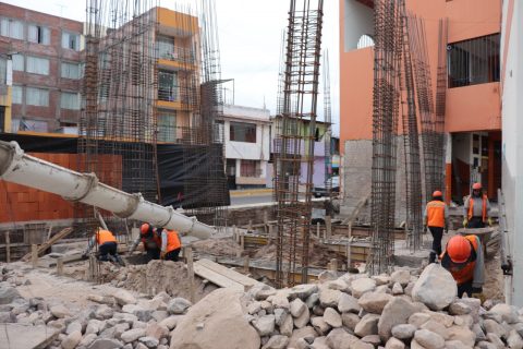 La Municipalidad Distrital de Cerro Colorado, realizó el día de hoy, el vaciado de los pabellones 3 y 4 de la institución educativa N° 40056 Horacio Zevallos Gámez, ubicado en calle 28 de Julio 128 de la urbanización Mariscal Castilla.