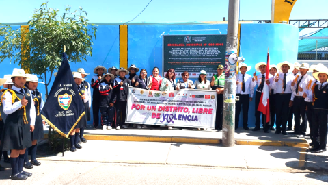 Es por ello, que en esta ocasión se procedió a la realización de una ceremonia oficial y develación de los carteles en tres lugares estratégicos como son la I.E. Domingo Zamácola y Jauregui, Mercado de Zamácola y la I.E. Libertadores de América, contando con la participación de diferentes Instituciones que conforman la Instancia Distrital de Concertación (IDC), además de estudiantes para fomentar la sensibilización y prevención de la violencia en todo el distrito.