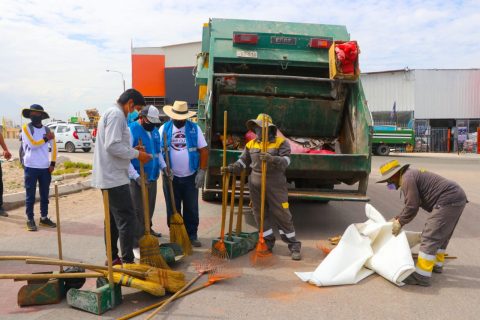 La jornada culminó a las 11.00 de la mañana, dejando libre de basura el ovalo de este importante ingreso a los pueblos de la autopista Arequipa La Joya, que un lugar altamente transitado por comerciantes y vecinos en general.