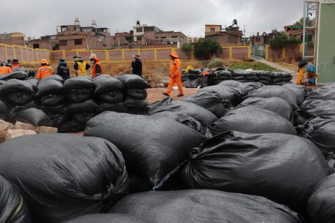 Las cuadrillas de emergencia de la Municipalidad Distrital de Cerro Colorado continúan con la colocación de sacos terreros en las diferentes vías de Semirural Pachacutec, Vía 54 de la margen derecha, Av. Los Incas y en las zonas que podrían ser afectadas por las lluvias, con el propósito de proteger las viviendas para que no sean inundadas.