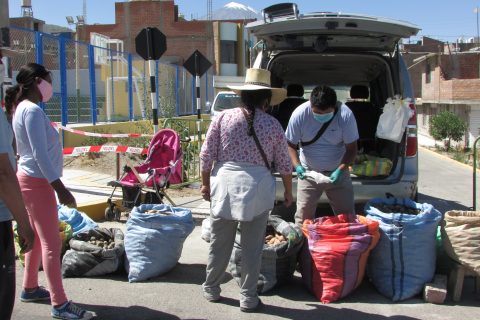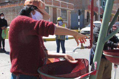 Promoviendo el lavado de manos así como el uso de pediluvios se desarrollaron los mercados itinerantes en los estadios Rayo Chachani de Zamacola y del sector V de Ciudad Municipal, donde la población asistió a abastecerse de productos de primera necesidad.