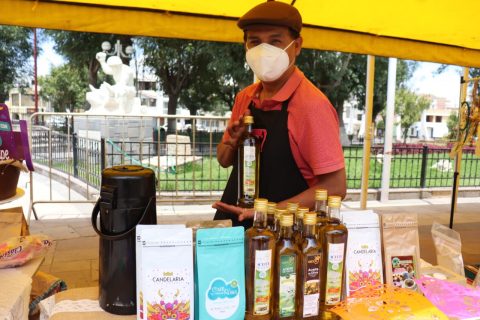 La feria que inició el pasado miércoles 10 de marzo, contó con la participación de más de 30 guías oficiales de turismo quienes ofertaron productos como el café orgánico, granos molidos, cacao, maíz, miel de abeja, sal de maras, pantalonetas, polos, plantas decorativas, bisutería, entre otros.