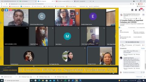 Se realizó la II Consulta Ciudadana de Seguridad Ciudadana en forma virtual y transmitida por la red social Facebook de la Municipalidad Distrital de Cerro Colorado, que fue presidida por el Alcalde de Cerro Colorado, sub prefecto, comisarias y sociedad civil organizada.