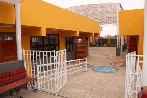 También se ha considerado la instalación de cobertura policarbonato, veredas interiores, patio de honor, graderías, juegos de niños, sembrado de gras, veredas, rampas y muros de contención, así como la instalación de malla metálica en cerco.