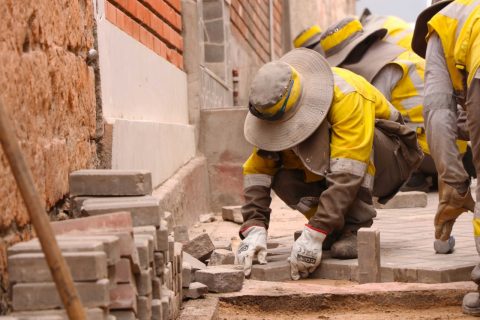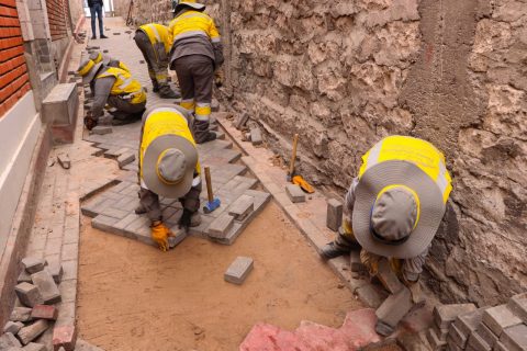 La Sub Gerencia de Mantenimiento de Vías, desde muy tempranas horas, empezó esta tarea de reconformación del adoquinado, que debido a filtraciones de redes de agua muy antiguas dañaron el paso peatonal, luego que fueron reparadas por la entidad prestadora de servicio, se inició la tarea de mejora vial.