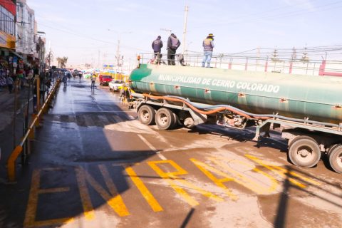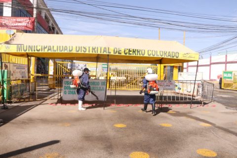 La Municipalidad Distrital de Cerro Colorado, realizó una campaña de santización en la plataforma comercial de Río Seco, con la finalidad de prevenir los contagios de Covid 19, y mantener la salubridad de tan importante centro de comercio del distrito, se inicio desde las 7 hasta las 9 de la mañana, sin perjudicar el ingreso de los comerciantes y clientes.