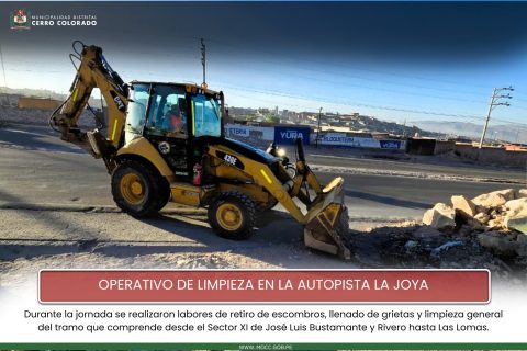 La Subgerencia de Tránsito y Seguridad Vial, en coordinación con la Municipalidad Distrital de Cerro Colorado y una empresa privada, ejecutó un importante operativo de limpieza y mantenimiento en la Autopista La Joya.