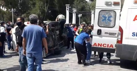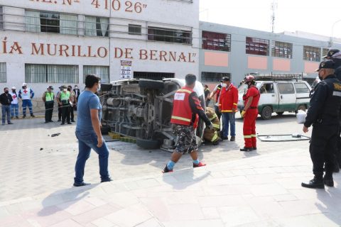 El hecho ocurrió a las 13:50 horas, por el impacto de dos unidades vehiculares, una de ellas de transporte escolar, que tenía abordo a 10 estudiantes del centro educativo Santa Rosa de Viterbo y estaba por recoger a estudiantes de la institución educativa María Murillo de Bernal, el cual por la colisión de otro vehículo se volcó en plena avenida.