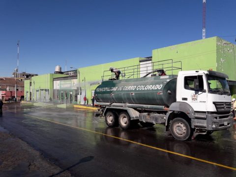 Como cada jueves desde el inicio de la declaración de Emergencia Nacional, se realiza la jornada de baldeado y desinfección de los ambientes del primer y segundo piso interiores del tradicional mercado La Libertad, la limpieza también se realiza en la parte exterior.