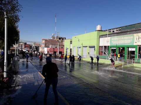 “De esta manera prevenimos los contagios de Covid 19, además, promovemos la limpieza de este importante mercado, para que los usuarios también tengan la seguridad de comprar sus productos en un lugar sin contaminación” indicó Pablo Guiterrez Huayllazo , Administrador Municipal del mercado La Libertad.