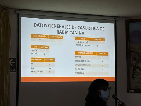 El personal de salud, explico que se tienen 33 casos de rabia en el distrito, de los cuales 27 canes tenían dueños y 6 no, además se conoció que 14 canes llegaron a sus dueños como regalo, 11 recogidos de calles, 4 comprados en el Avelino Cáceres o Facebook y 4 encontrados en torrenteras.