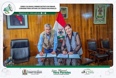 El alcalde de la Municipalidad Distrital de Cerro Colorado, Econ. Manuel Enrique Vera Paredes, encabezó la firma del convenio de cooperación interinstitucional con el Instituto Nacional de Estadística e Informática (INEI), convirtiéndose en el primer distrito del departamento de Arequipa en asumir este compromiso para fortalecer la organización y ejecución de los Censos Nacionales 2025: XIII de Población, VIII de Vivienda y IV de Comunidades Indígenas.